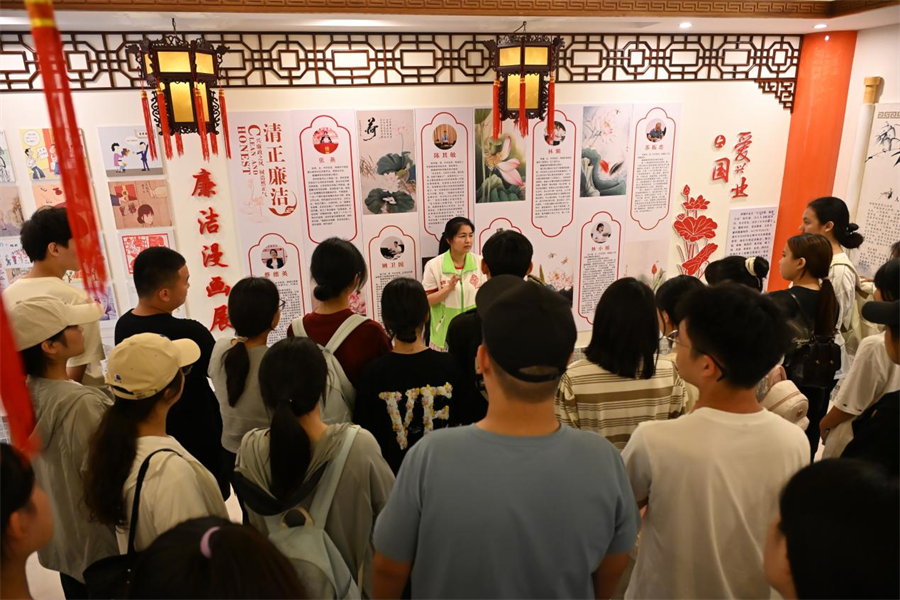 活动最后,志愿者在张燕书记带领下分批次参观家风家训教育基地。该基地集中展示社区优秀家庭的治家格言、廉洁故事及传统美德典范。张燕书记希望志愿者通过参观学习优秀品质,在后续学习与社会实践中实现自我提升。