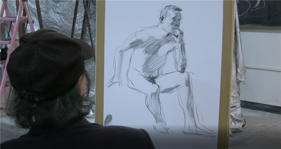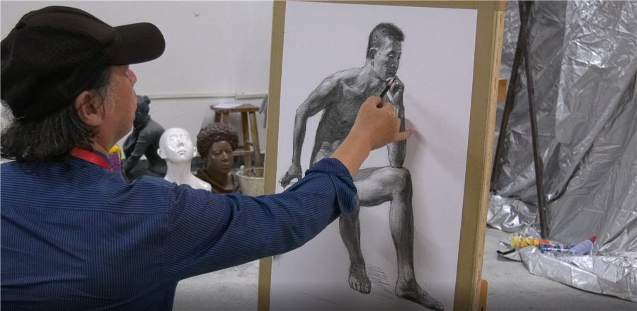 湖南师范大学美术学院曲湘建教授莅临我校美术学院进行人体素描写生示范教学