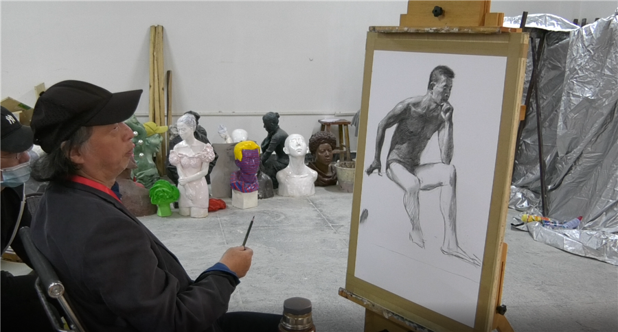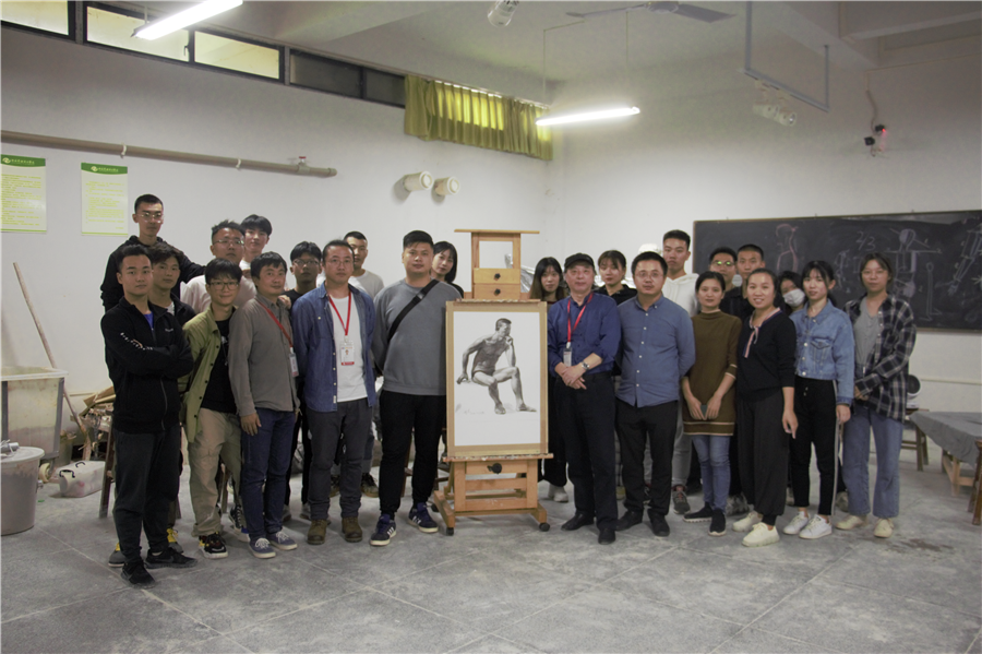 2020年10月22日,曲湘建教授莅临美术学院指导教学,在图书馆负一楼雕塑教室为美术学院同学上了一堂精彩的写生示范课。