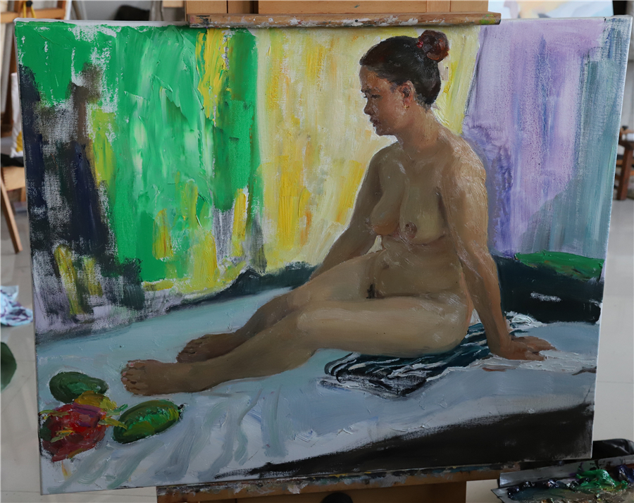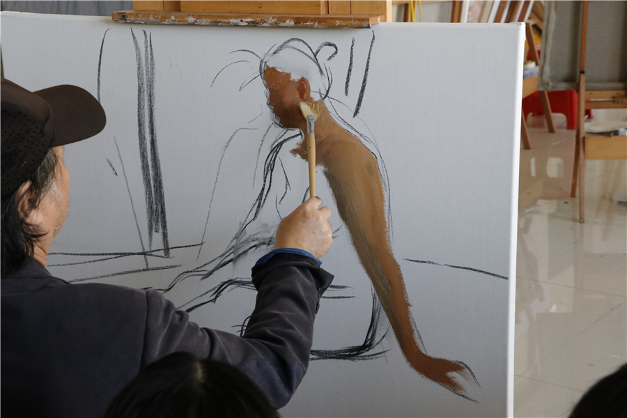 随后几天时间里,曲教授深入课堂,指导18、19级学生色彩人体写生及色彩人物写生,并且又进行了两次色彩人物示范,为更多同学在学习绘画的道路上指明了方向!