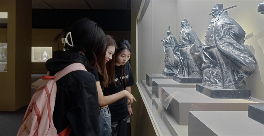 考察第二站是中国美术馆。美术学院师生参观了中国美术馆的多个专题展览,其中包括“美美与共——中国民主同盟盟员美术作品展”,展览由中国民主同盟中央委员会与中国美术馆联合主办,展出了涵盖中国画、油画、版画、雕塑、书法、工艺美术等多个艺术门类的150余件盟员美术作品,展览通过历史脉络梳理,展现了民盟盟员美术家们生生不息的艺术创作道路。在“宝藏经典 活化精神——中国美术馆经典作品展”中,学生通过展览经典作品看到前贤传承过程中的守正、创新、发展、集大成、致高远,深刻体会传承对中华文脉延续至今所发挥的不朽价值和磅礴力量。