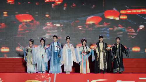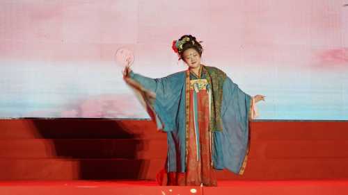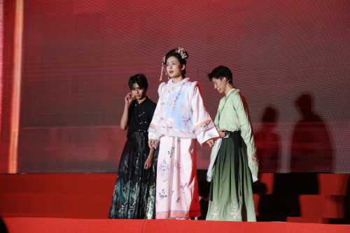 走秀《华夏霓裳秀--千年的祈愿》模特们身着华丽汉服,优雅台步仿佛穿越时空,尽显中华传统服饰魅力。