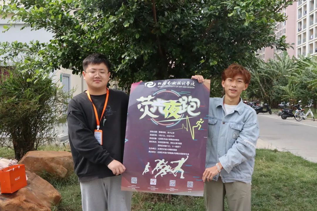 荧光夜跑是参与者利用荧光装备随性装扮,与其他参与者一起盛装出席,进行无排名之分,无速度之争的运动,沿途欣赏赛区特制的荧光装置艺术,是一场结合荧光元素的夜跑。为了让同学们更好的了解此次活动并且积极参加,工作人员耐心地为同学们解答疑惑。 在工作人员对活动进行了详细的介绍后,同学们对活动的理解也进一步加深并且积极地在现场进行扫码报名。 荧光夜跑活动主旨为推崇全民健身运动,结合社会潮流,以绿色、健康、运动的宗旨号召高校学生及社会全体成员通过慢跑这一项具有青春、活力的运动方式强健身心,并提倡全面运动将健康生活传递给周围每一个人!(梁可容、赵鹏、陈越超/摄)